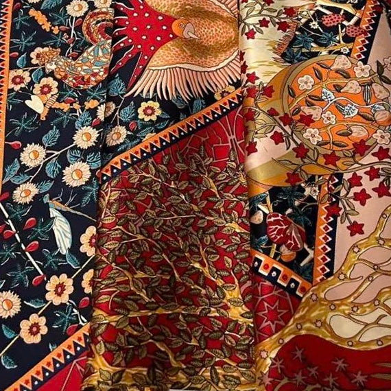 Wrap yourself in timeless elegance with our navy teal and orange silk scarf. It’s a must-have accessory for every fashion-conscious individual. Our navy teal and orange silk scarf will elevate your look to new heights, even when paired with a simple white shirt, blue jeans, and heels.